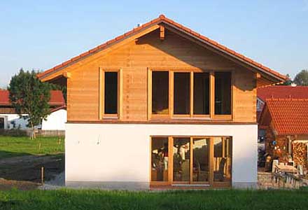 Das Erdgeschoss wurde in klassischem Ziegelbau errichtet. Das 1.Geschoss ist
